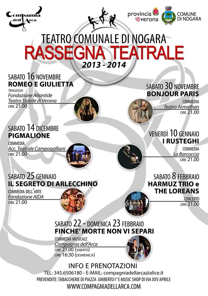 Dal 16 novembre 2013 al 23 febbraio 2014 una proposta continua di spettacoli di ogni genere e varietà, interessanti, esilaranti e coinvolgenti presso il Teatro Comunale di Nogara, Verona.