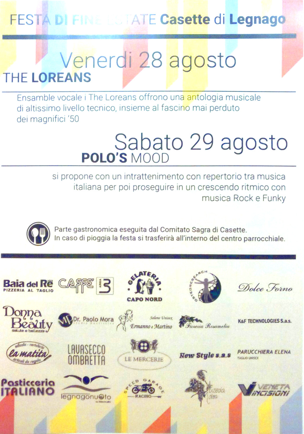 Il posto migliore per farlo, per noi, non può essere che la cara Legnago, che ci ha ospitato in numerose manifestazioni sempre differenti, e lo faremo in grande stile nella piazza del quartiere Casette, non lontano dal centro, venerdì 28 agosto 2015, alle ore 21.
